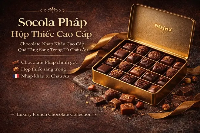 Socola Pháp hộp thiếc là dòng chocolate cao cấp được nhiều người yêu thích nhờ sự kết hợp giữa hương vị socola tinh tế và thiết kế hộp thiếc sang trọng. Những hộp socola này không chỉ mang đến trải nghiệm thưởng thức chocolate đậm đà mà còn trở thành món quà tặng ý nghĩa trong nhiều dịp đặc biệt.
