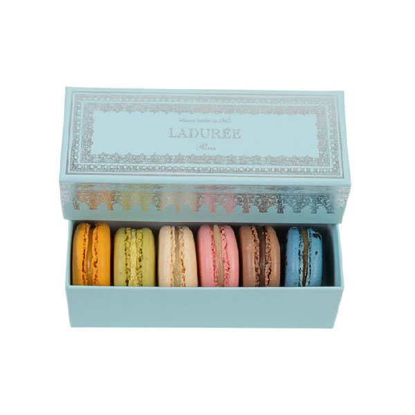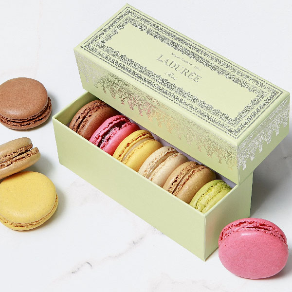 Chiếc bánh Eugénie nhỏ nhắn được đặt trong hộp quà tặng trang nhã với họa tiết “toile de Jouy” tinh tế và sang trọng của thương hiệu. Những chiếc bánh này gợi nhớ hình dáng biểu tượng của Laduree: bánh macaron, nhưng lại mang đến một trải nghiệm hoàn toàn mới.