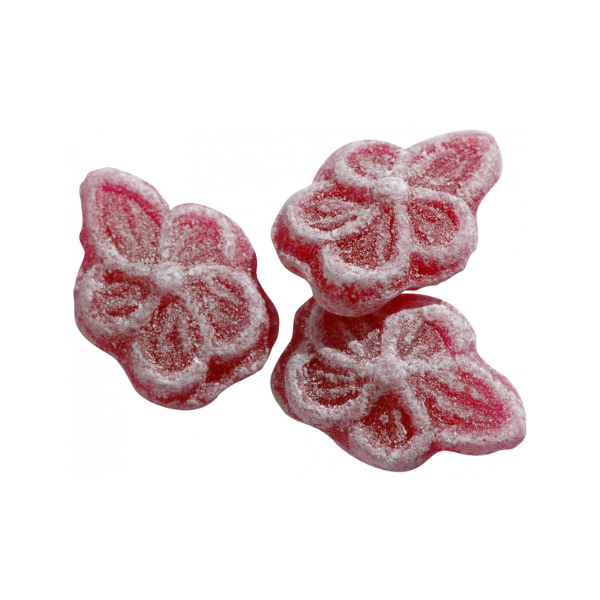 Thành phần: Đường, hoa violet tự nhiên, chất làm bóng (gum arabic), hương liệu hoa violet tự nhiên, màu thực phẩm chiết xuất từ thực vật (anthocyanins).